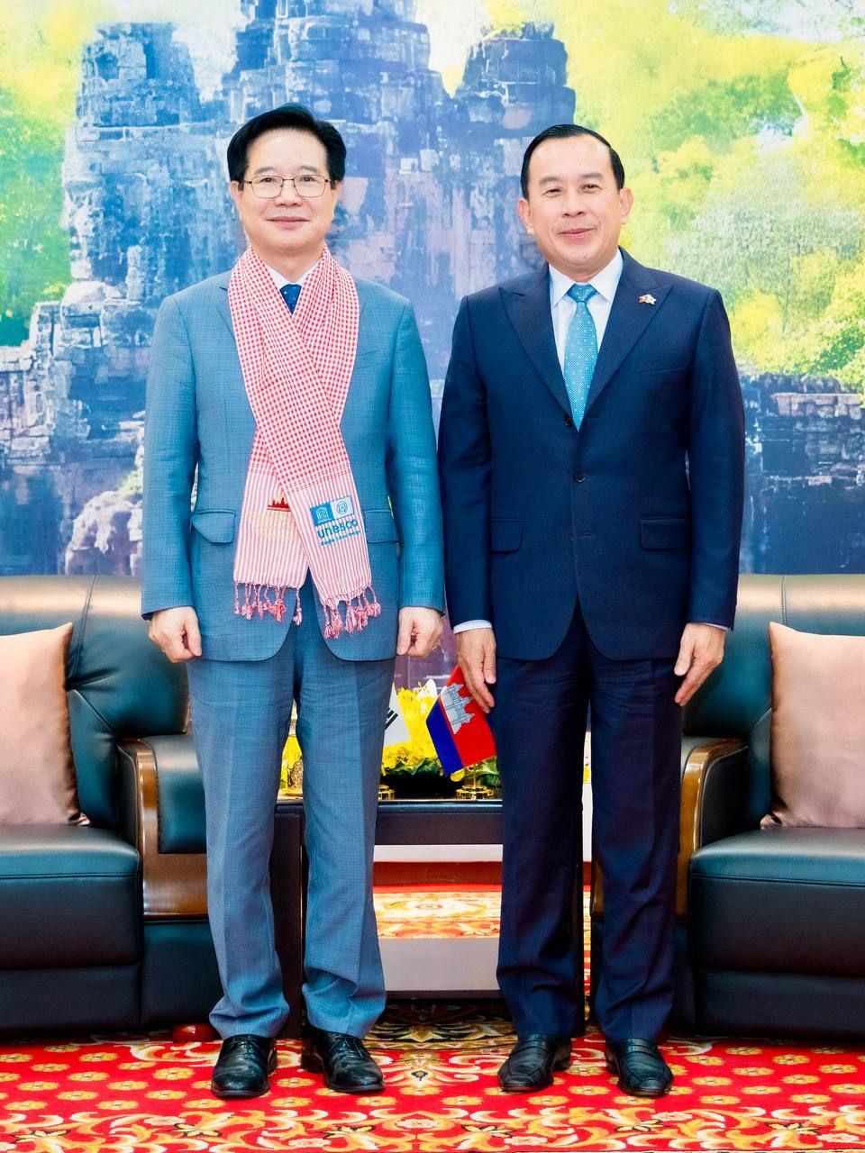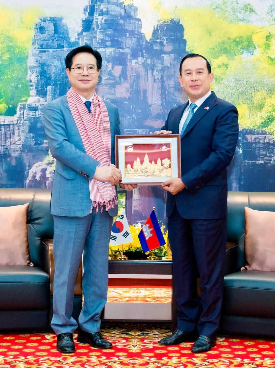 【柬埔寨头条综合报道】据柬媒消息,2026年3月20日,在第18届国际合作伙伴会议期间,柬埔寨旅游部长胡海在旅游部办公楼会见韩国驻柬埔寨大使Kim Chang Yong一行,双方就深化两国旅游领域合作展开交流。 会上,旅游部长对韩国政府、人民及大使馆长期以来对柬埔寨发展的支持表示感谢,尤其是在多项发展项目合作以及接收大量柬埔寨劳工赴韩就业方面所作的贡献。 同时,部长向大使介绍了柬埔寨当前在政治、经济、社会及旅游领域的发展情况,包括韩国游客与投资者在柬埔寨的规模,并重点提及由首相洪玛奈推动的打击网络诈骗行动,以及内阁已批准的《反网络诈骗法》草案。 对此,韩方大使高度评价柬埔寨在打击网络犯罪方面的努力与成效,认为双方合作成果显著,甚至超出预期,并表示韩方高度重视该法案,认为其体现了柬埔寨系统性治理的决心。 此外,双方还就推动两国旅游业发展深入交换意见,重点探讨开通韩国主要城市与暹粒之间的定期直航航线。同时,大使也就开发创新旅游产品、吸引更多韩国游客,以及拓展旅游与商务合作提出了建议。 |