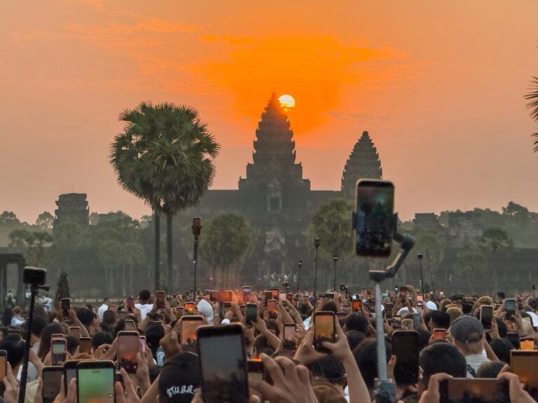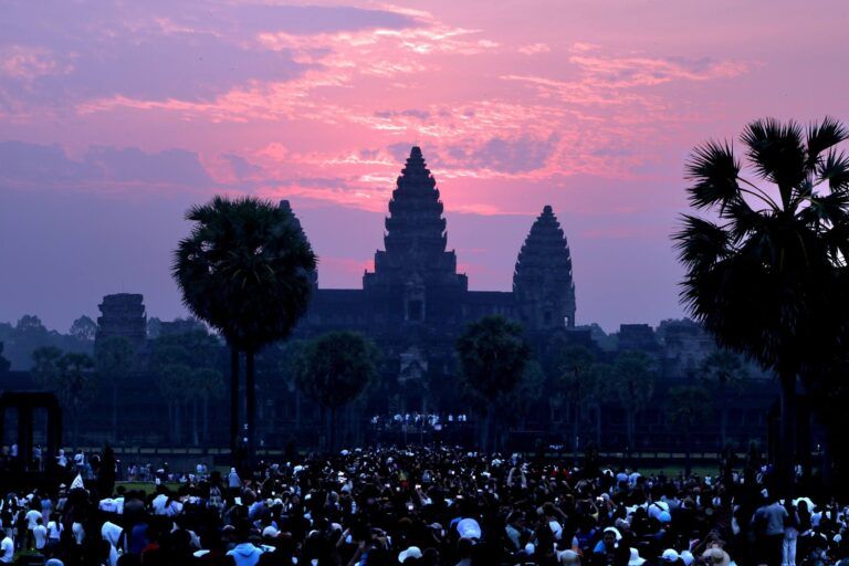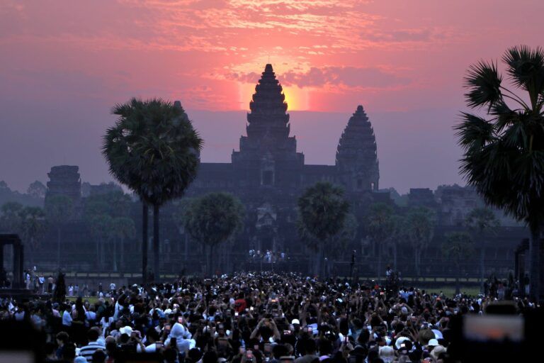 【柬埔寨头条综合报道】据柬媒消息,2026年3月21日清晨,大量国内外游客涌向暹粒吴哥窟,只为一睹难得一见的“塔尖日出”壮丽景象。 每逢昼夜平分之际(即春分与秋分,通常在3月21日至23日及9月同期),站在吴哥窟西门前方观赏,太阳会与吴哥窟五座主塔呈现出精妙对齐的奇观——旭日从中央最高塔正上方缓缓升起,宛如镶嵌于古老建筑之巅,场面震撼而神圣。 这一现象不仅展现了古高棉文明在建筑与天文方面的卓越智慧,也体现了宗教信仰与自然规律的完美融合,被视为人类文化遗产中的一大奇迹。 正因如此,每年此时都会吸引众多游客与摄影爱好者慕名前来,现场气氛热烈,蔚为壮观。 |