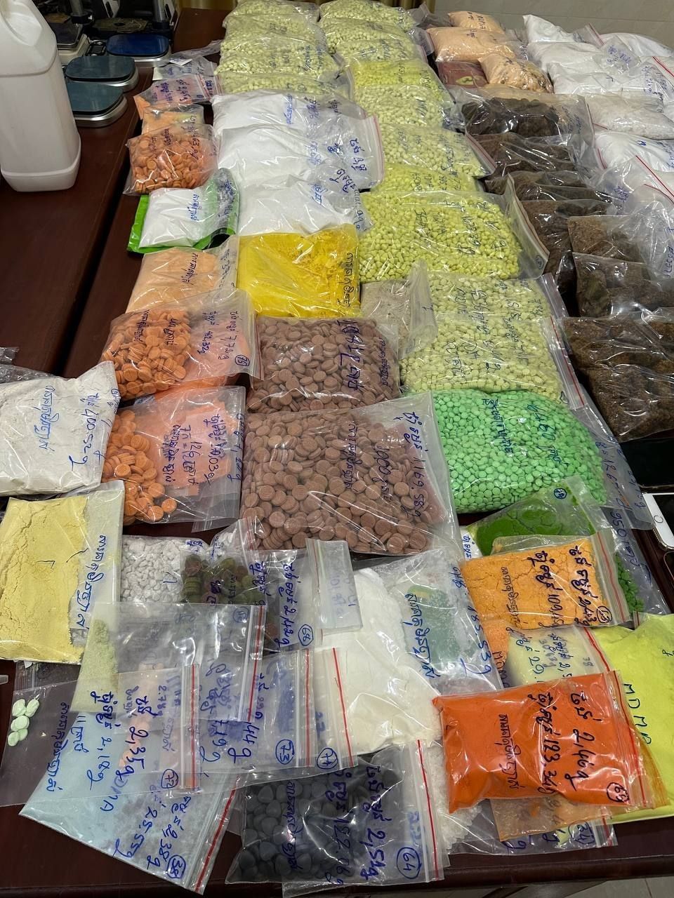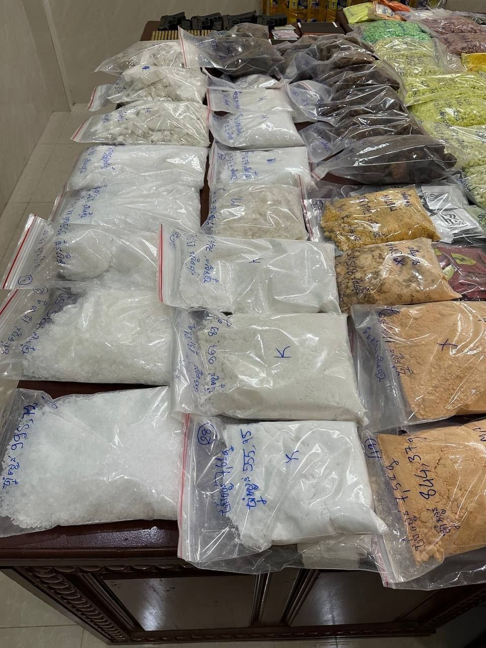 【柬埔寨头条综合报道】据柬媒消息,2026年3月25日,柴桢省警察局禁毒局公开通报近期破获的一起特大毒品案件。在巴域市,警方成功摧毁一个集毒品贩运、储存、运输、加工及非法持械于一体的跨境犯罪团伙,共缴获各类毒品逾44公斤及4支非法短枪。 此次专项打击行动于2026年3月18日正式展开,由国家警察总署总监苏通下令,柴桢省警察局局长毕伟拉负责统筹,并由负责禁毒事务的副局长高苏塔亲赴一线带队指挥。 行动中,警方共抓获5名外籍男性嫌疑人,年龄介于25岁至28岁之间,其中包括4名越南籍人员及1名中国籍人员。 在涉案窝点,警方查获了大量证据。经专业机构称重与鉴定,缴获毒品总重达44.77公斤。具体种类包括:氯胺酮(K粉)约8.64公斤、MDMA(摇头丸)粉末约21.5公斤、海洛因约4.33公斤、尼美西泮约1.48公斤、鸦片脂约8.81公斤。此外,还发现标有“CHALI”字样的橙色包装毒品12包、标有“人参”图标的黄色包装毒品20包、10台电子秤、多箱电子烟产品(含3箱烟杆及4箱烟弹)以及成套毒品加工设备。 除毒品外,警方还现场收缴了4把短枪、4个弹匣及200发子弹。另有6部手机、1辆汽车以及8.96公斤尚待鉴定的可疑物质被依法扣押。 目前,5名嫌疑人及相关证物已由柴桢省警察局看管。警方正抓紧完成案卷整理工作,准备近期将该案整体移送至柴桢省初级法院进入司法审理程序。 (编译:影子) |