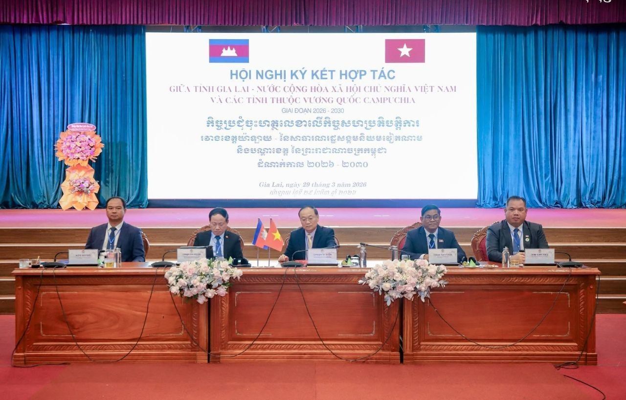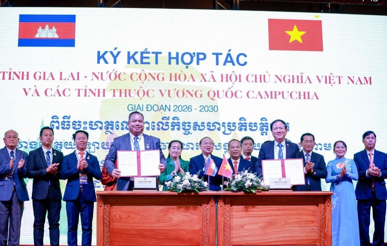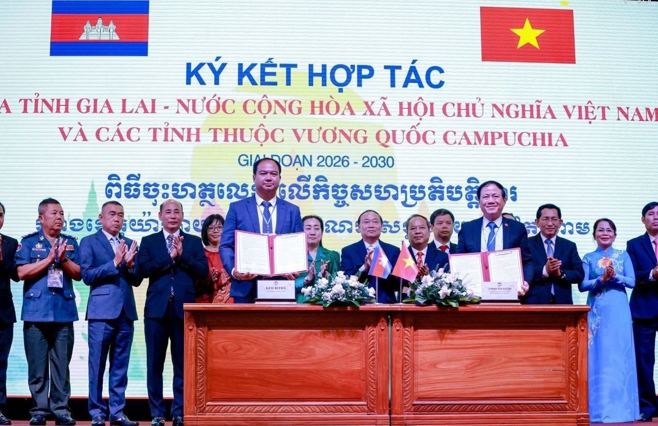 【柬埔寨头条综合报道】据柬媒消息,2026年3月29日下午,柬埔寨上丁省、柏威夏省及拉达那基里省与越南嘉莱省在越南嘉莱省举行签约仪式,正式签署了2026年至2030年多领域合作谅解备忘录(MOU),旨在持续深化双边友谊并推动各领域可持续发展。 此次柬方代表团由上丁省省长索苏布达、柏威夏省省长金乐迪以及拉达那基里省省长杨宋恩率领。越方则由越南共产党中央委员、嘉莱省委书记泰大玉,以及嘉莱省人民委员会主席范英俊等领导共同出席。 上丁省省长索苏布达在仪式上高度评价了越南及嘉莱省在经济社会、文化艺术及民生发展方面取得的成就。他指出,新签署的2026-2030年合作框架将涵盖经济投资、工业贸易、交通运输、农业水利、文化体育、旅游教育、卫生科技等多个关键领域。 (编译:影子) |