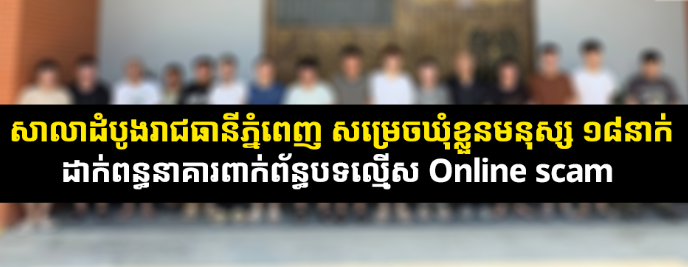 【柬埔寨头条综合报道】据柬媒消息,金边市初级法院调查法官洪卜近日签发18份拘留令,对18名涉嫌参与网络诈骗的嫌犯依法采取羁押措施。根据2026年4月1日签发的拘留令,上述嫌犯因涉嫌严重诈骗罪,且被认定为有组织团 ...
