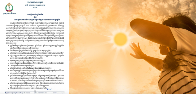 【柬埔寨头条综合报道】据柬媒消息,2026年4月3日,柬埔寨卫生部发布通知,提醒并敦促民众在旱季期间加强健康防护。预计气温将升至37°C至41°C,且受气候变化影响,热浪出现更加频繁且不规律。 卫生部指出,在37°C至41°C的高温环境下,极端天气会对所有人造成影响,尤其是老年人、婴幼儿、儿童、孕妇、户外工作者、运动员以及慢性病患者,更容易出现严重健康问题,如中暑、脱水、心血管疾病、肾脏疾病、肌肉痉挛及呼吸道感染等。同时,因饮用不洁水或食用不安全食物,还可能引发腹泻、痢疾等传染性疾病。 为保障健康、预防疾病,卫生部建议民众在高温天气中注意以下事项: 一、日常防护措施 * 饮用安全水源,如过滤水、煮沸水或经氯/氯胺消毒的水(每20升水加入2片消毒片)。 * 保持充足饮水,成人每日饮水量应不少于2升。 * 尽量避免长时间暴露在阳光下,外出时注意防晒或选择阴凉处停留。 * 穿着浅色、宽松衣物,并佩戴宽边帽或使用遮阳伞。 * 从高温环境返回后,不要立即冲冷水澡。 * 注意个人卫生,勤洗手,尤其在进食前和如厕后。 * 食物应妥善覆盖存放,避免变质污染。 * 避免饮酒及高糖、高盐饮料。 * 家庭成员应重点关注老年人、2岁以下儿童及慢性病患者等易感人群。 二、中暑预警与处理 若出现头晕、恶心、呕吐、头痛或肌肉痉挛等症状,应警惕中暑早期征兆。此时应: * 立即转移至阴凉处休息2至3分钟; * 缓慢饮用凉水; * 停止一切活动,防止病情加重。 如患者症状未缓解,应尽快送医,避免围观,确保空气流通。 三、中暑急救措施 针对出现昏迷或严重不适的患者,应立即采取以下措施: * 将患者转移至阴凉通风处; * 使用冷毛巾擦拭身体,重点降温部位为腋下和颈部,可配合风扇降温; * 让患者平躺,双腿略微抬高,促进血液循环; * 若患者意识清醒,可少量多次补充凉水;如已昏迷,切勿喂水; * 若15分钟内症状未改善或出现意识丧失,应立即送往医院或拨打急救电话。 此外,卫生部要求各级卫生部门与地方政府密切协作,重点监测弱势群体健康状况,及时应对突发情况。 公众可通过卫生部官方网站或疾控中心官方脸书及网站获取更多信息,或拨打免费热线115咨询。 |