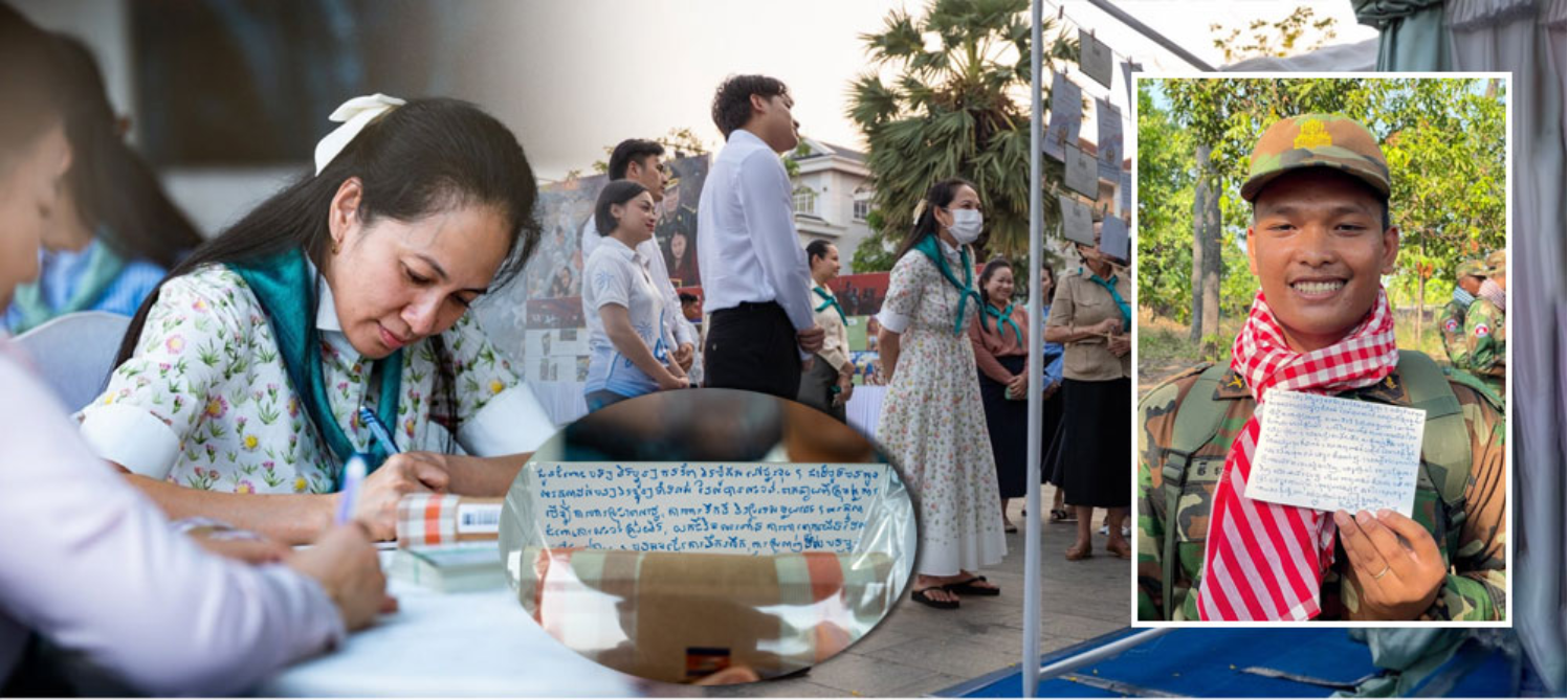 【柬埔寨头条综合报道】据柬媒消息,近日,一群柬埔寨青年发起了一项旨在支持边防官兵的拥军活动,通过收集水布并书写祝福语,向一线守军表达敬意。柬埔寨首相洪玛奈亲王夫人碧占莫妮博士不仅积极参与其中,更亲笔为 ...