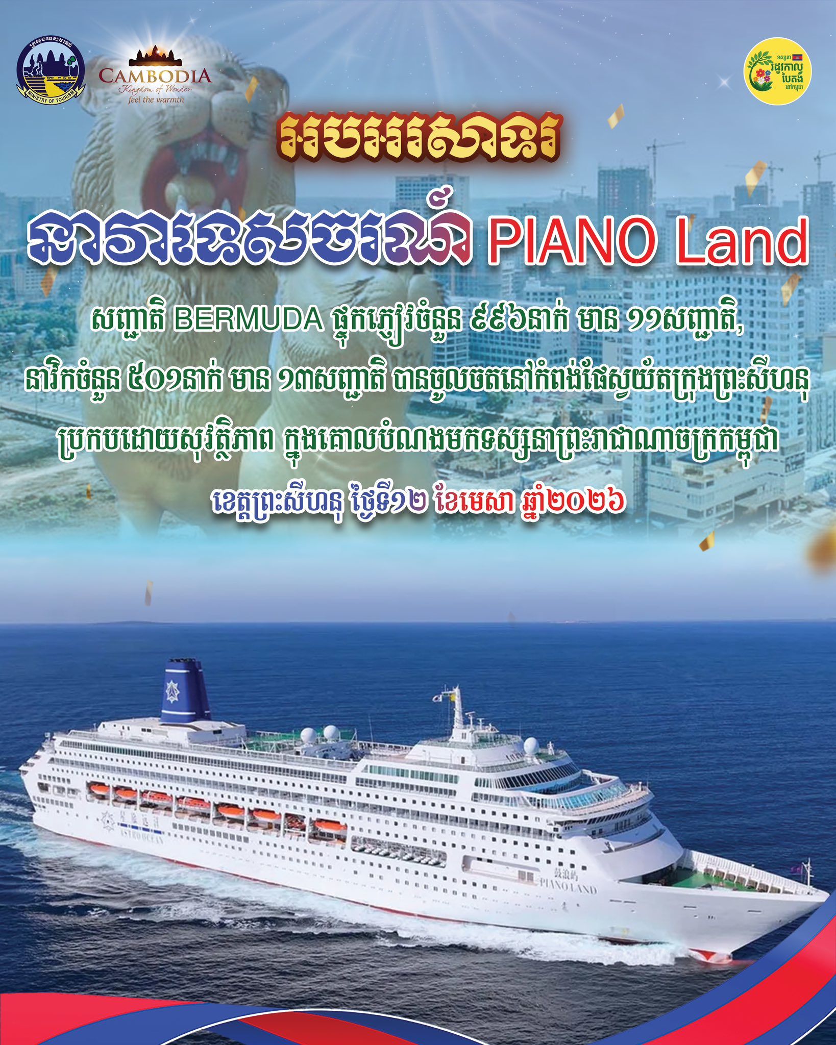 【柬埔寨头条综合报道】据柬媒消息,2026年4月12日,百慕大籍“PIANO LAND”号邮轮安全停靠西哈努克自治港。柬埔寨持续展现其作为安全、充满魅力的国际旅游目的地的吸引力,热情迎接全球游客的到来。在柬埔寨旅游部 ...