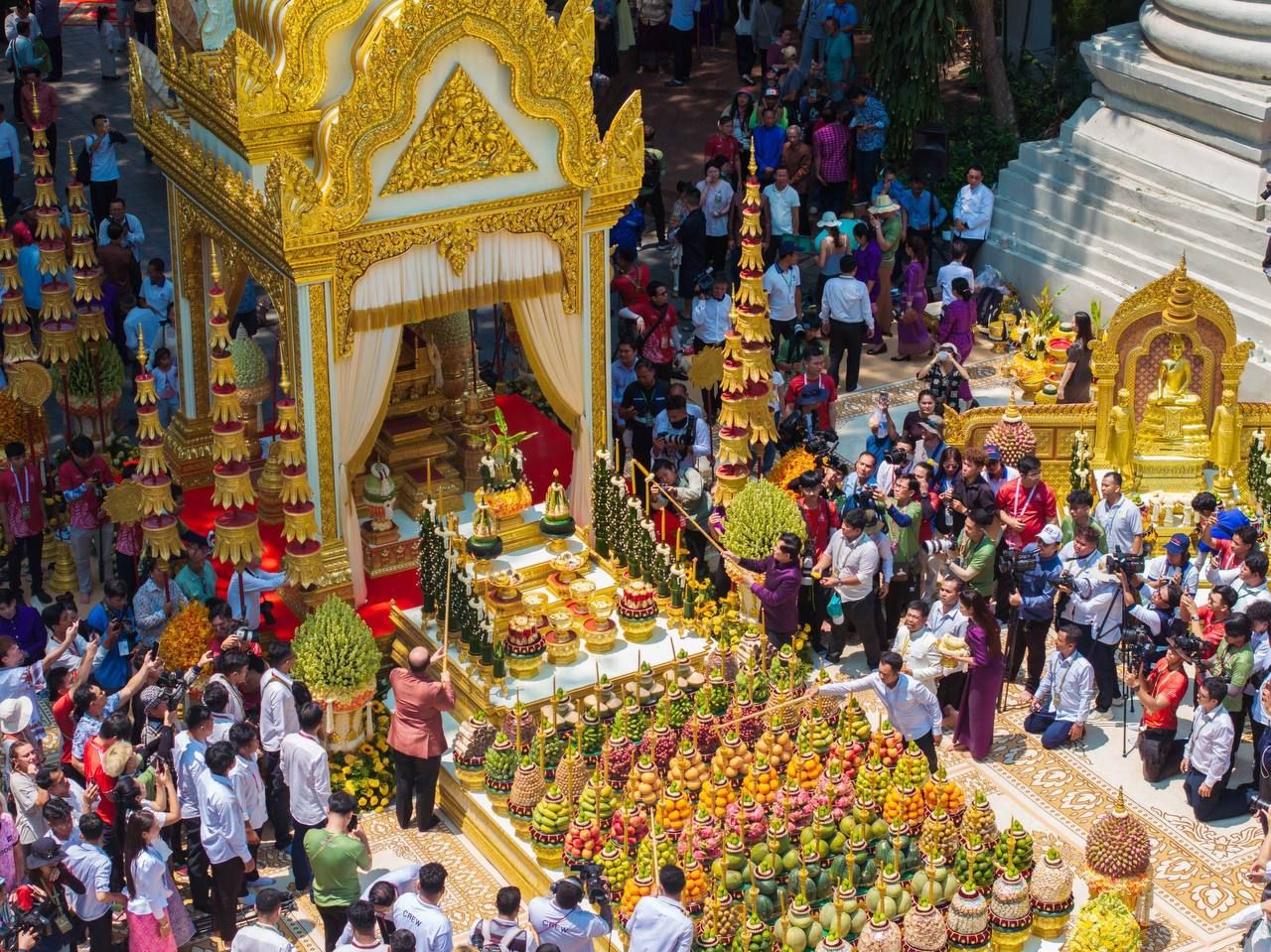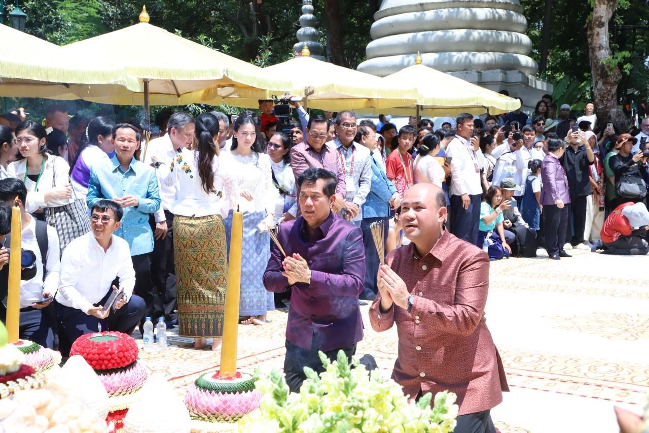 【柬埔寨头条综合报道】据柬媒消息,2026年4月14日上午,正值柬埔寨传统新年首日,柬埔寨副首相兼公共事务部长、柬埔寨青年联合会主席洪玛尼,在金边塔仔山历史文化景区隆重主持宋干节迎接新年仙女下凡仪式。 金边市市长坤盛作为地方当局代表,与柬埔寨青年联合会共同协作参与了此次盛会。活动现场气氛热烈,大批本国民众及国内外游客齐聚一堂。此次活动旨在保护与传承柬埔寨优良的传统文化习俗,提升旅游吸引力。同时,活动秉持“高棉一家亲”的团结精神,将新年庆典的喜悦与前线武装力量及离散同胞紧密相连。 据悉,迎接仙女下凡是柬埔寨新年的核心传统仪式,是旧年仙女与新年仙女交接的时刻。2026年轮值下凡的新年仙女为大梵天的三女儿——烈沙戴薇(Raksa Devi)。 (编译:影子) |