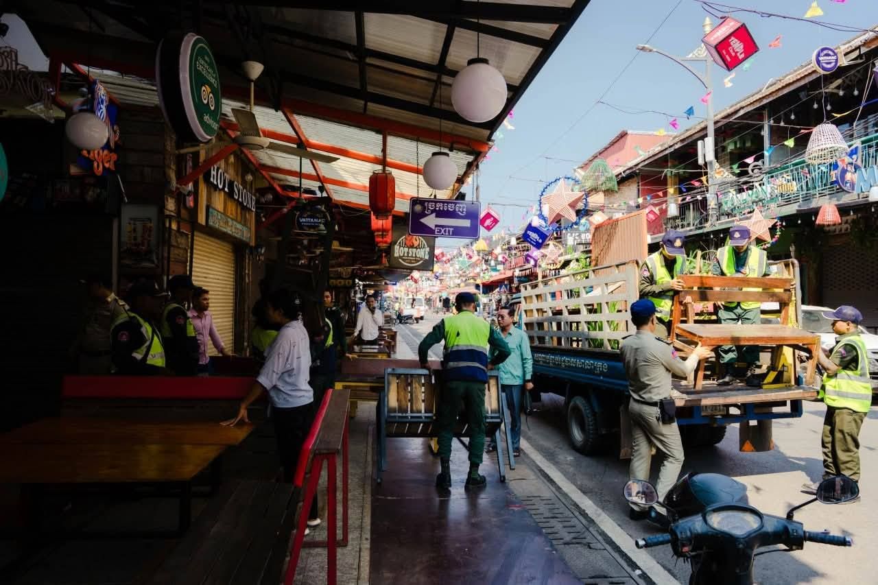 【柬埔寨头条综合报道】据柬媒消息,暹粒市老市场附近的酒吧街(Pub Street)周边存在无序摆摊、占用人行道等现象。为迎接2026年柬埔寨新年,确保节日期间的公共秩序与游客安全,暹粒省政府近期对该区域展开了专项整 ...