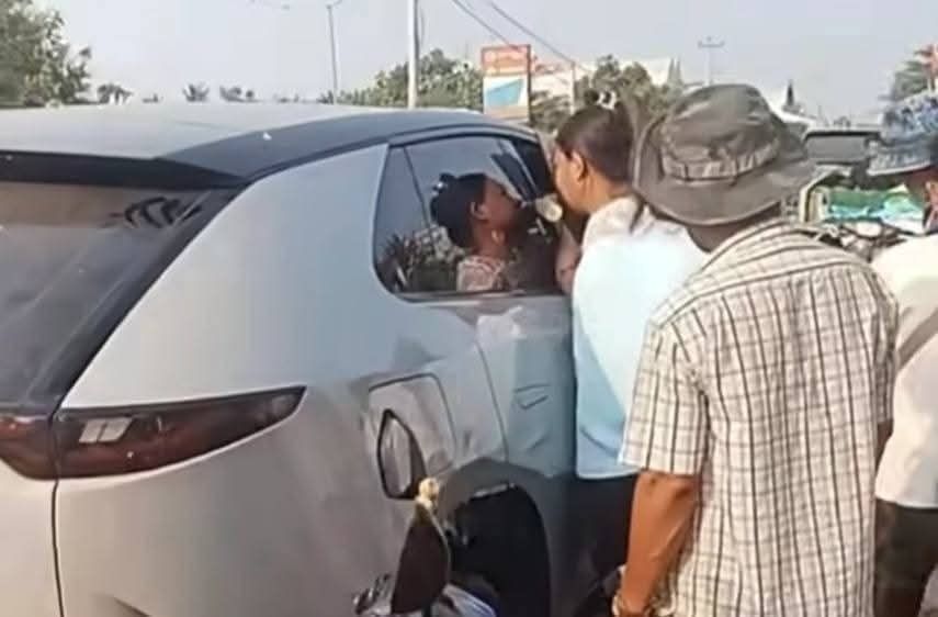 【柬埔寨头条综合报道】据柬媒消息,4月16日清晨约6时,干拉省斯安县发生一起突发事件,一名男子在驾驶一辆电动车(Mazda EZ-60)途中突遇故障,被困车内无法脱身。 目击者称,事发时车辆原本正常行驶,随后突发故障导致车辆熄火,车内电子系统异常,车门无法开启,司机因此被困在车内。 被困男子一度通过车窗伸手向外求助,附近居民发现后立即尝试施救,但未能成功将其救出。 截至当日上午11时,男子仍被困车内。警方已赶赴现场展开救援,并对车辆突发故障及车门锁死的具体原因展开调查。 |