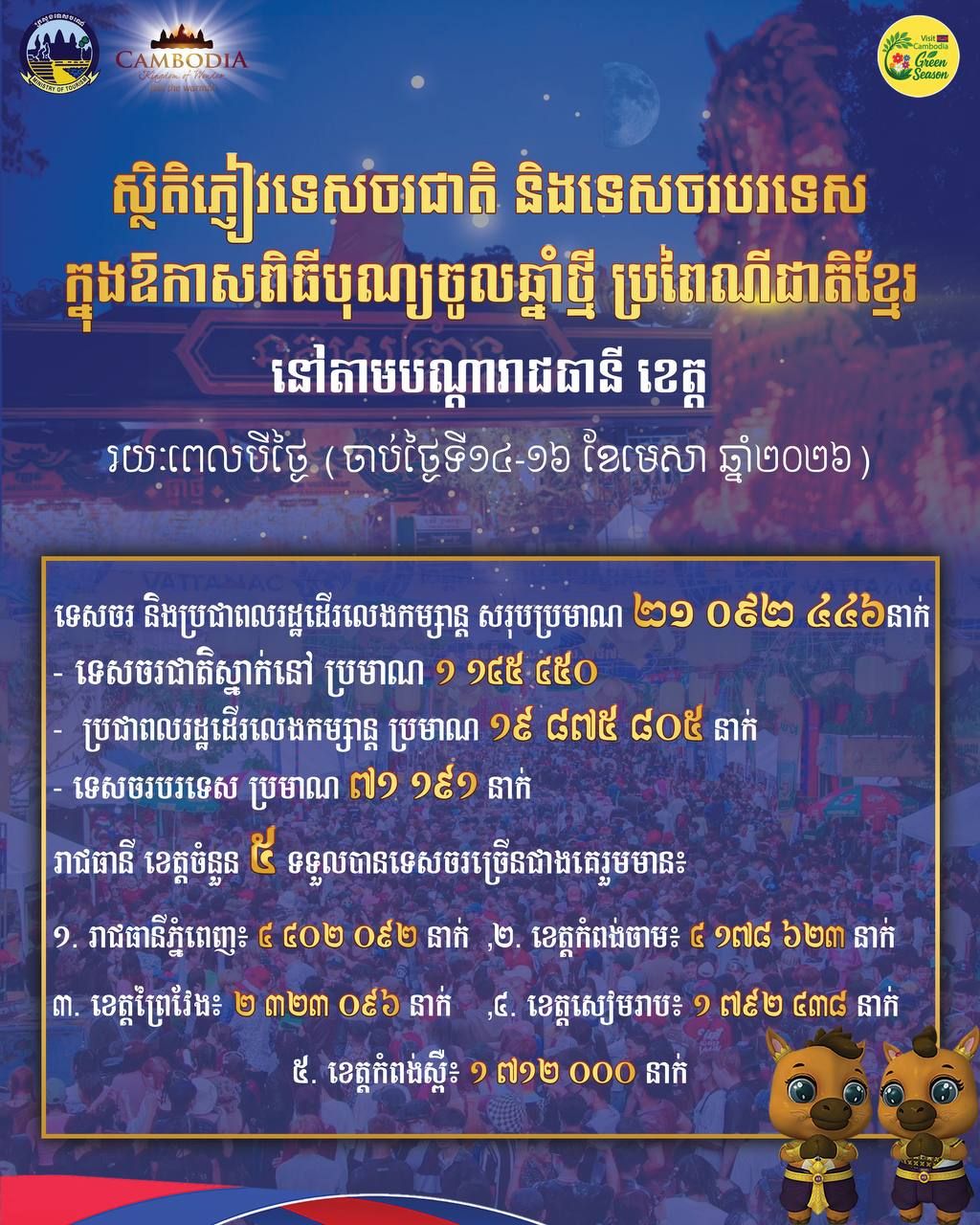 【柬埔寨头条综合报道】据柬埔寨旅游部公布的数据,在为期三天的柬埔寨传统新年活动期间,国内外游客总计超过2100万人次在全国各省市游玩。数据显示,三天内共有约21,092,446名游客和民众出行旅游,具体包括:• 过 ...
