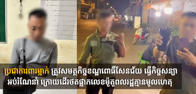 【柬埔寨头条综合报道】据柬媒4月22日报道,金边市波森芷区警察局于4月21日上午,将一名涉嫌在路边无故拍摄居民车牌的安保人员带回警局进行问话。 据了解,该事件发生于4月20日。警方是在发现有网友将相关视频发布至社交媒体后,才获悉此事并展开调查。 警方已要求该安保人员签署保证书,承诺停止拍摄居民车牌的行为,因其举动已对居民心理及公共秩序造成影响。 据悉,此次拍摄行为共有2人参与,其中被教育人员为一名44岁男子,其携带对讲机。目前,警方正追查另一名涉事人员,并将依法要求其到案签署保证书,确保不再发生类似行为。 |