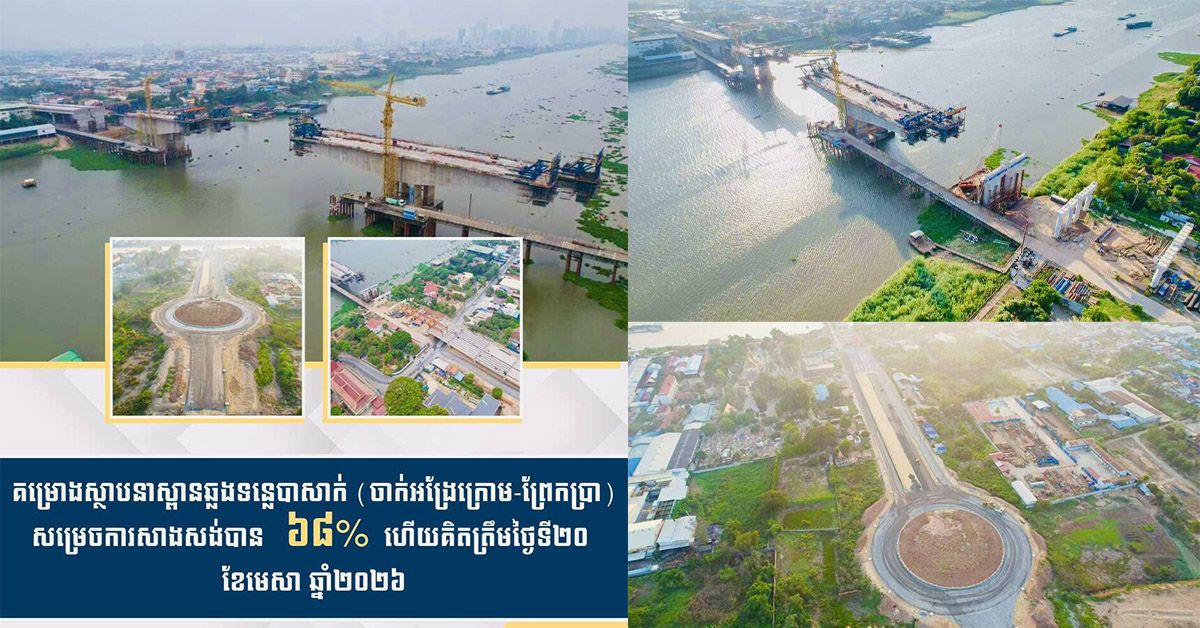 【柬埔寨头条综合报道】据柬媒4月22日消息,截至4月20日,横跨百色河(下长夏社-白豹)大桥建设项目已完成68%,较原计划提前6%。 据介绍,该大桥全长1,650米,桥面宽27米,桥头引道长804.3米,设计包含2条汽车车道、1条摩托车车道及1条人行道,建设工期为42个月,预计将于2027年底竣工。 项目建成后,将有效缓解通往铁桥头区1号公路莫妮旺大桥一带的交通压力,同时加强金边南部与德崇国际机场之间的联通,改善百色河沿岸交通状况,并有助于提升区域交通与物流效率,推动当地经济发展。 |