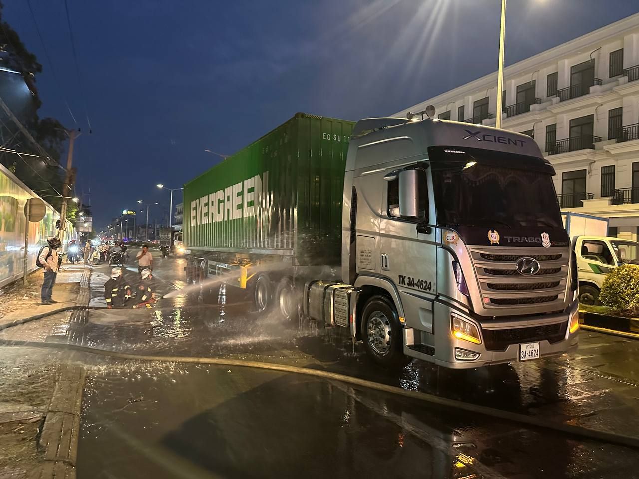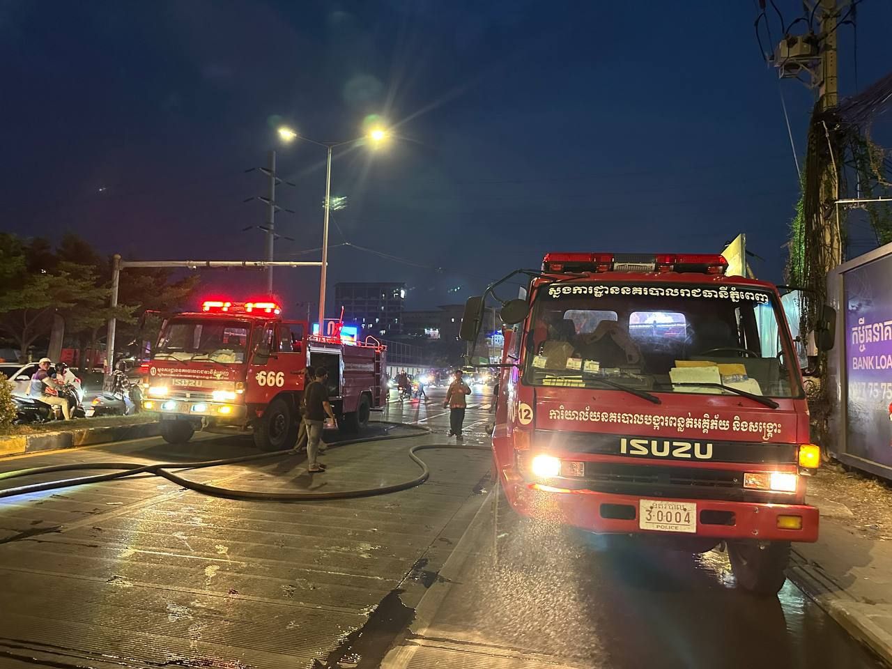 【柬埔寨头条综合报道】据柬媒报道,4月26日18时50分,金边市森速区发生一起集装箱车自燃事故。 事发前,一名男子驾驶该集装箱车从公司驶出,行至一处红绿灯附近时,车辆底部突然起火,火势迅速蔓延。司机与周边居民第一时间使用灭火器进行扑救,但由于火势不断加剧,最终只得报警求助。 接警后,警方与消防人员迅速赶赴现场,多辆消防车联合展开灭火作业。经过紧张扑救,火势最终被成功控制并彻底扑灭。 此次事故未造成人员伤亡,火灾也已于当晚完全处置完毕。 |