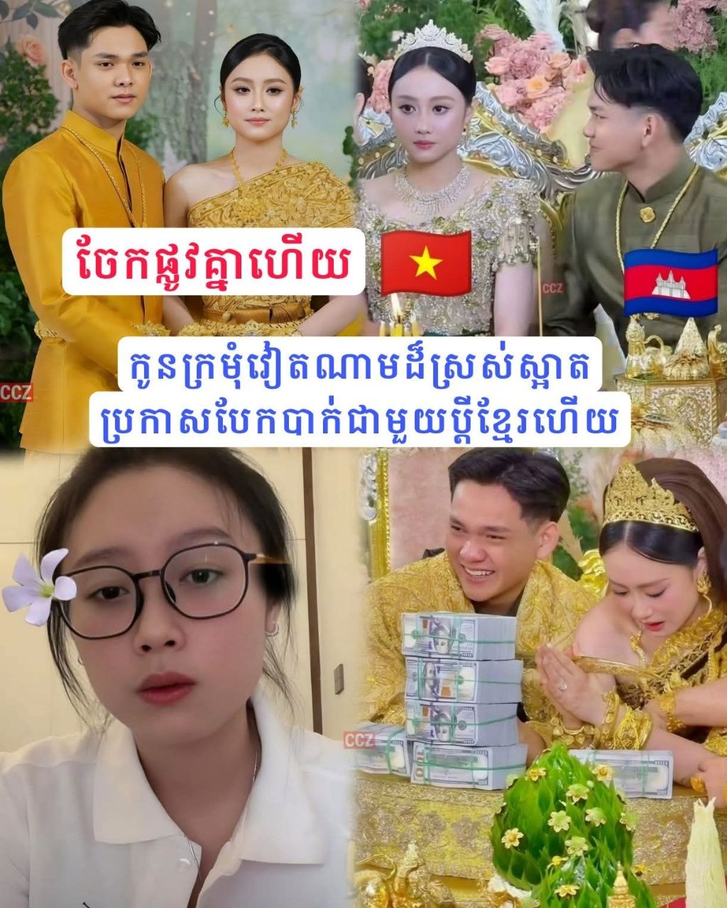 【柬埔寨头条综合报道】据柬媒消息,曾因婚礼现场摆放大量美元现金而走红网络的一对柬越跨国夫妻,近日宣布结束婚姻关系,引发舆论关注。 消息传出后,不少曾关注并祝福这段跨国婚姻的网友表示震惊与惋惜。这对夫妇此前因奢华婚礼而迅速走红,如今却传出离婚消息,形成鲜明反差。 该越南女子在直播中回应外界关切,确认双方已分开,并解释称,婚姻破裂的主要原因在于长期存在的沟通障碍,包括语言不通、生活方式差异以及观念分歧。她表示,尽管两人曾拥有美好的回忆,但种种现实问题最终使双方选择各自前行。 据了解,2026年初,这场跨国婚礼曾在网络上引发广泛讨论。婚礼现场摆放着整齐成捆的美元现钞,场面引人注目。两人分别在柬埔寨和越南举办婚礼,相关视频在社交媒体迅速传播,不少网友曾留言祝福“真爱不分国界”。 然而,这段一度备受关注的婚姻最终未能延续,也再次引发公众对跨国婚姻中语言、文化与生活差异问题的讨论。 |
