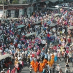 现场图丨金边大量市民聚集参加“和平游行”