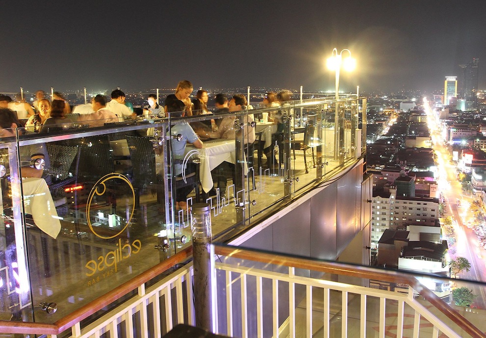 Eclipse Skybar酒吧金边最高的空中酒吧,可以欣赏金边全景和现场乐队表演,提供各式鸡尾酒和柬餐 联系电话:023964171 地址:金边市金边大厦楼顶 ...
