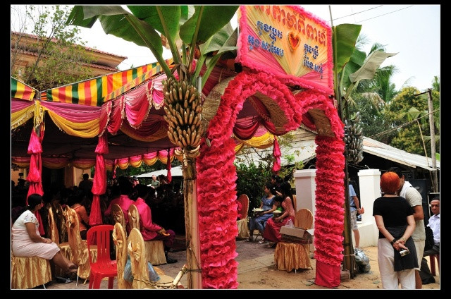 在柬埔寨,通常是男子“嫁”到女家,婚礼的全部仪式都在女方家中举行,要连续举行三天。第一天叫“入棚日”,上午,男方的长辈要到女方家中搭建新郎棚、迎宾棚和炊事棚。稍后男方家请来乐队演奏“送郎曲”,新郎在其 ...