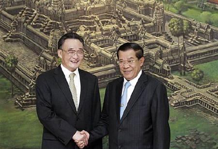 2010年11月4日,中国全国人大常委会委员长吴邦国和柬埔寨首相洪森在金边握手。REUTERS/Chor Sokunthea 路透金边4月5日电(记者 Prak Chan Thul)---柬埔寨人Ly Mom一生都住在首都 ...