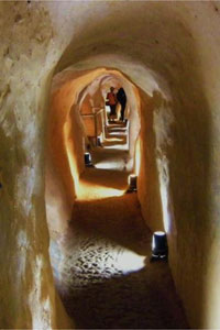 灯光明亮的地道一角。 从友谊村地道入口牌坊到地道模式村营寨,距离271米,但道路陡坡,沿途枝叶稠密遮天,置身其间,宛如走进森林,虽然是混凝土道路,但几乎每十步登一台阶,而且有少部分路段无扶手,大部 ...