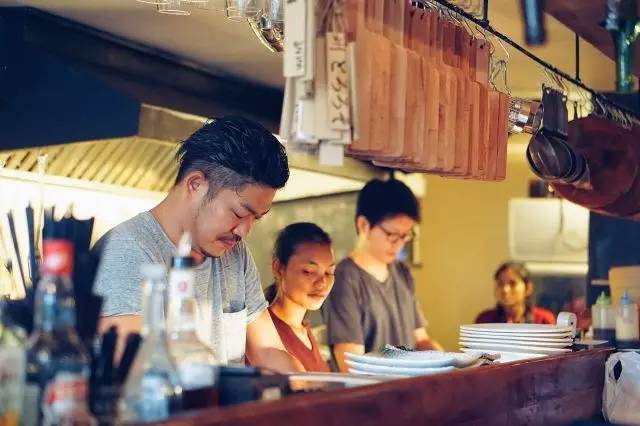 这家店是工业装修风格浓重的日式居酒屋隐藏在小巷子里但不是什么偏僻陋巷附近集齐的各个国家酒吧咖啡屋小酒馆