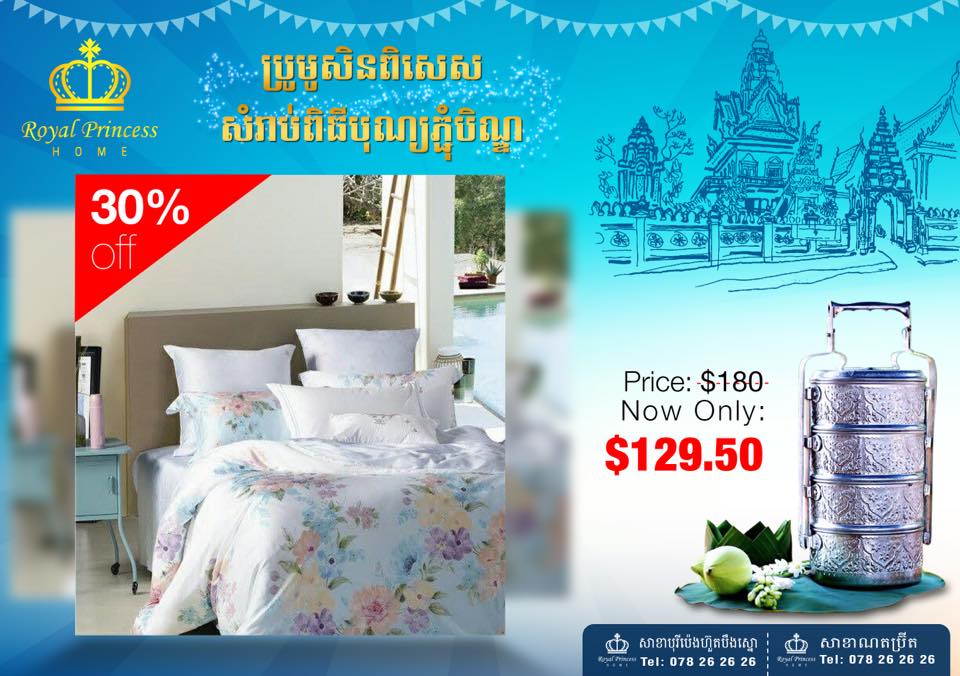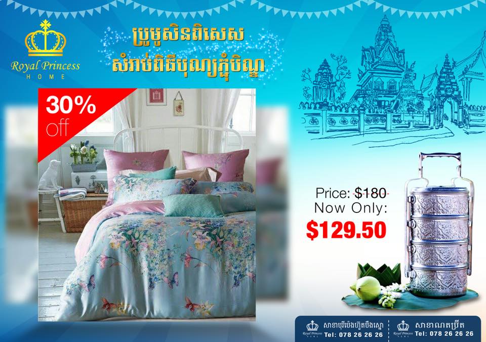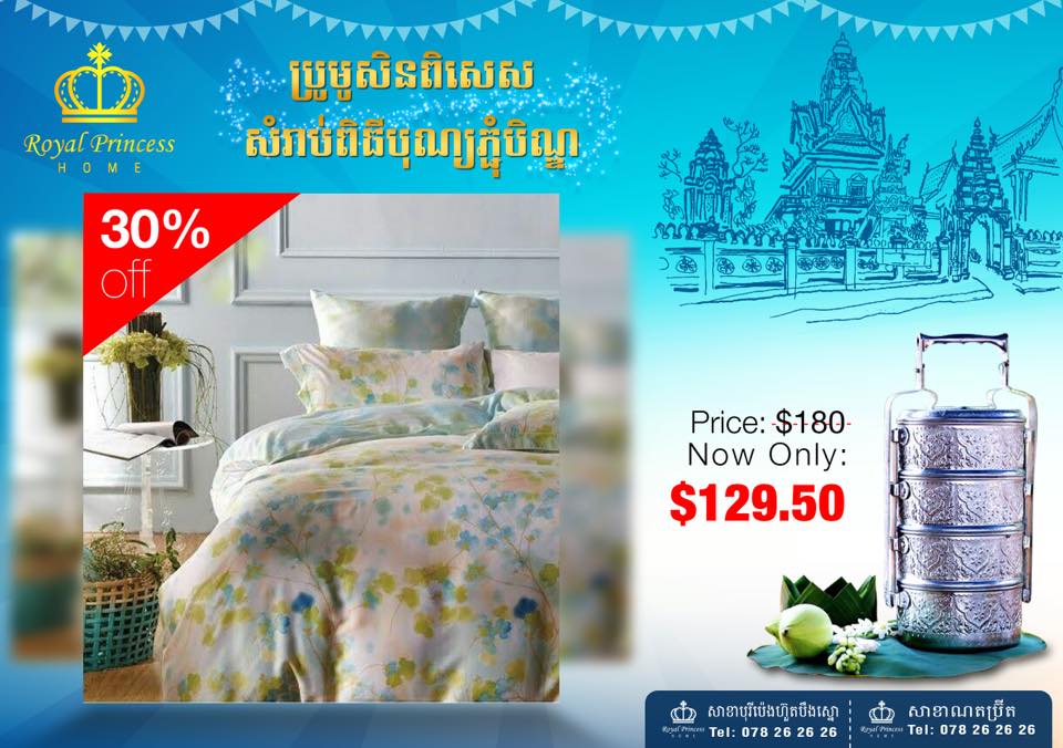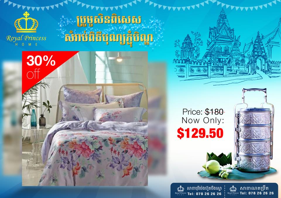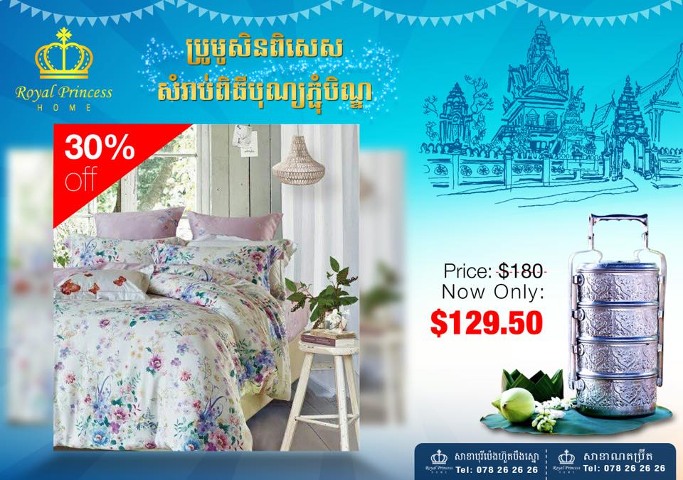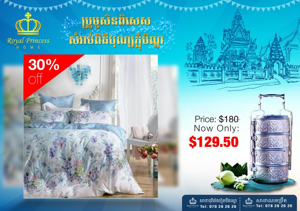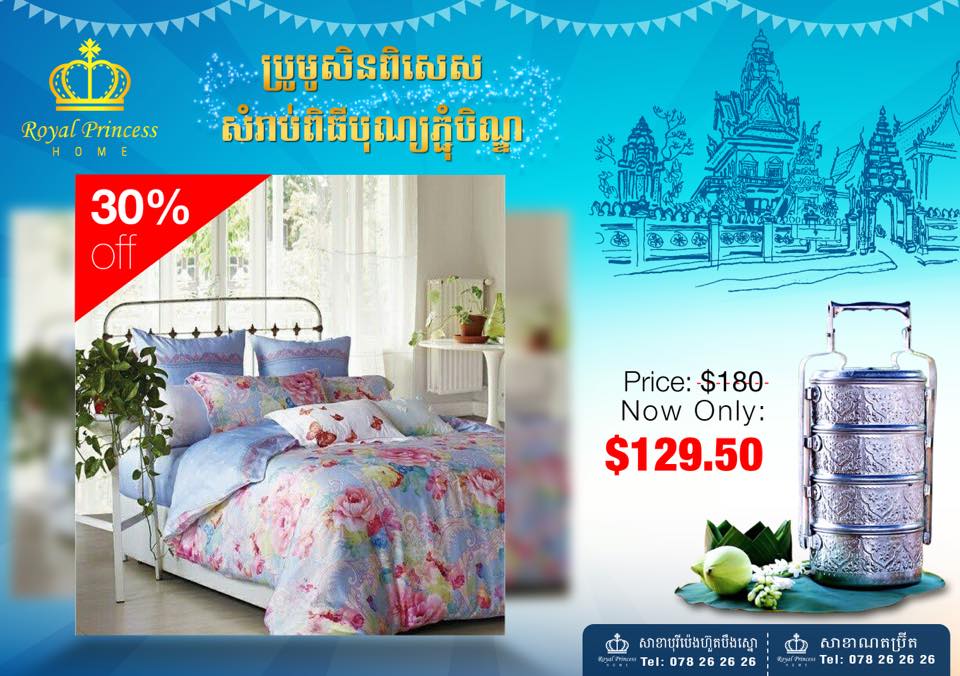 Royal Princess Home家居店亡人节打折优惠30% 机会难得,库存有限,售完为止。 地址:金边市 新金边小区路 联系电话:078 262 626