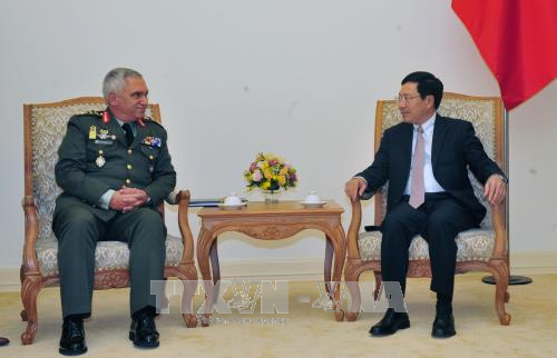 越南政府副总理兼外长范平明(右)会见欧盟军事委员会主席科斯卡拉克斯。(图片来源:越通社) 范平明强调,越南在政治、经济、文化、安全国防等所有领域不断深度地融入国际社会。在国防领域,越南日益积极参加 ...