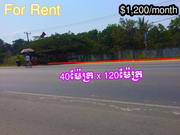 一号公路土地出租 面积40m x 12m 月租金1200$ 联系电话:096 61 33 911 / 085 222 738