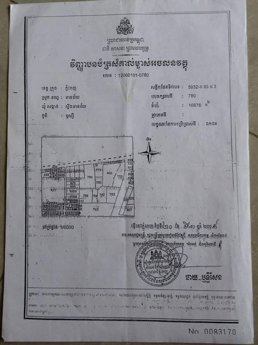 金边市土地及大市场出售 土地面积:16876 m2价格:1100 $/m2 (可谈)产权:硬卡地址:金边市,菩森芷区,宗周分区,永盛路(主干道),Phsar Ek Reach3 市场。 特别说明:该土地有很大的市场,具有排水基础设施及排 ...