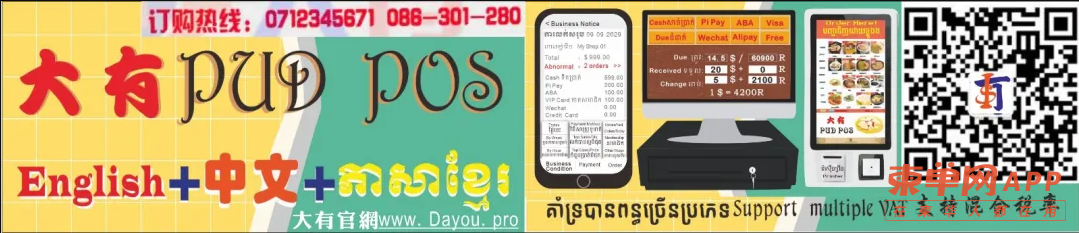 火锅、酒楼、烧烤、酒吧、快餐均可使用 大有POS点餐系统,支持中英柬及汇率换算找零, 一键切换,中国和柬埔寨服务员轻松上手 柬埔寨餐饮点菜收银系统 柬埔寨火锅店专用收银系统 柬埔寨超市收银系统 柬埔寨酒店收 ...