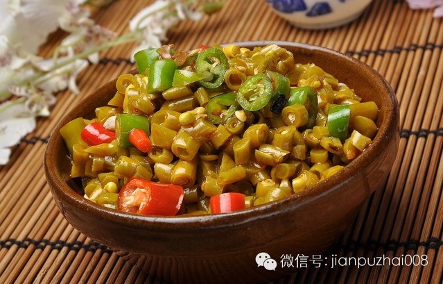 酸豆角,就是腌制过的豆角。豆角含有丰富的优质蛋白质、碳水化合物及多种维生素、微量元素等,可补充机体的招牌营养素。其中所含B族维生素能维持正常的消化腺分泌和胃肠道蠕动的功能,抑制胆碱酶活性,可帮助消化,增进食欲。酸豆角原料好买,做法简单,天然绿色,开胃下饭,其味鲜、香、嫩、脆,既可以单独食用,又是上好的炒、煮、烤、炖配菜菜。