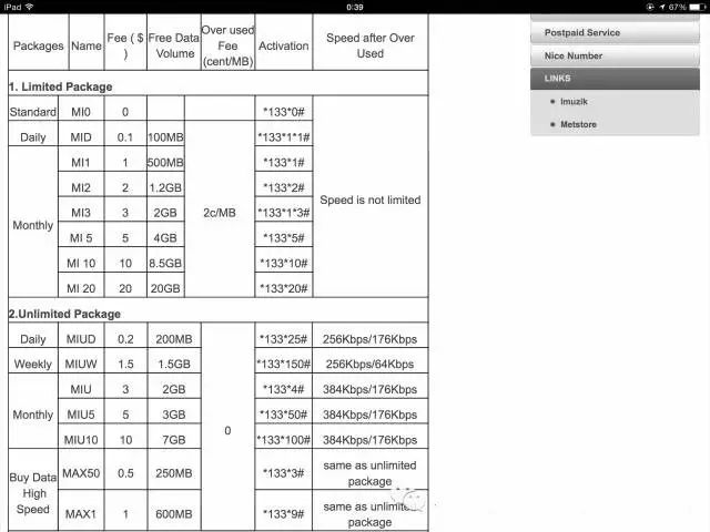 无限制流量metfone的无限制流量分为按天、按周、按月三种,均赠送一定的无限速流量,用完之后会有一定的速度限制,具体如图: