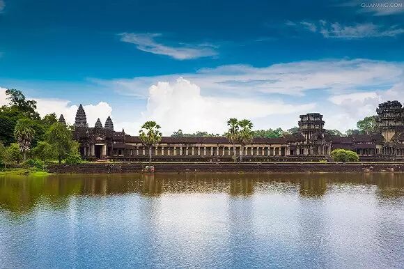 古代东方四大奇迹之一的“吴哥窟” 吴哥窟(Angkor Wat)又称吴哥寺,被称作柬埔寨国宝,是世界上最大的庙宇。12世纪时,吴哥王朝国王苏耶跋摩二世(Suryavarman II)希望在平地兴建一座规模宏伟的石窟寺庙,作为吴哥王朝的国都和国寺。因此举全国之力,花了大约35年建造。它是吴哥古迹中保存得最完好的建筑,以建筑宏伟与浮雕细致闻名于世。