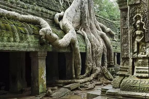 好多人认识吴哥是由于那出名的高棉的微笑,或者说古墓丽影里的塔普伦寺,也有可能是《花样年华》里梁朝伟把心中的秘密说给吴哥窟旁的树洞,然后以草封掩。可这都是吴哥窟可以讲述的故事里的一朵极小的浪花而已。 这曾是一座极尽繁荣的王城,建筑峻美,浮雕精细。这也曾是一个战火遍及的修罗场,尸横遍野,瘟疫横行。这还是艺术和宗教文化的无上殿堂,印度教和佛教文化交相繁荣,将美演绎到极致。 埋葬一个人的秘密·塔普伦寺 ▲隐没于丛林中的塔普伦庙瑰丽如梦,这里的参天古树,大都是木棉树和绞杀榕,几百年的树精,根深蒂固,纵横盘结。《花样年华》的结局,梁朝伟找了个古树说心事,就是在这里。 ▲木棉树,粗大、淡褐色、多疖的树根。死亡后树干会慢慢的出现中空,它巨大的树根可以将整座寺院包裹。绞杀榕寄生在树干中,以最纠缠的姿势昭示着所有权。 ▲即使塔普伦很多地方已经倾倒荒败,仍难掩当年的繁华瑰丽,一路走进去,墙壁,石柱那些繁复的雕刻,一重重回廊里残留的朱红色,甚至是你一路踩着走过去的散落石块,仔细看都能看到精美的雕琢。 ▲整座庙宇处处可见树根缠着石墙的景象,这里沉寂千年,遗迹与森林相依相伴,用一种几近固执的姿态纠缠直至人迹再次打破这里的平静,人声鼎沸、脚步凌乱,或走马观花,或痴迷沉醉不过是千年来的过影,最终剩下的还是只有树和遗迹。 吴哥的微笑·巴戎寺 ▲ 巴戎寺——吴哥王朝的国庙,以“吴哥的微笑”闻名于世,位于大吴哥城的正中央。巴戎寺是以中小型石块堆栈而成的四十九座高塔组成的塔林,49 座四面佛加上城门上的 5 座,总共是 54 座。据说 54 座佛陀是代表吴哥王朝辖下的 54 座城池,每一座佛陀的四个面分别又代表慈、悲、喜、舍。 ▲ 置身巴戎寺内,不管朝哪个方向看都能看到穿越千年的微笑面对着你。 ▲ 当时独自坐在这里面的石台上冥想,抬头仰望湛蓝的天空,上午的阳光洒在脸上,在地上投下斑驳的光影,真想就这样在这坐一整天。精美的壁画讲述着久远的金戈铁马。昔日壮观依旧,但这些倾倒的立柱还能支持多久。 女人的城堡·女皇宫 ▲ 柬埔寨的吴哥地区,有着上千座的古文明遗迹,其中有一座看似火红的神庙,称为”女人的城堡”,最旖旎的一座遗迹。这里风格精巧别致,与大部分吴哥古迹所使用的青砂岩不同,女王宫采用高棉特有的红土建造,色彩极为艳丽。 ▲ 女皇宫,建于公元967年,之后,她也曾被埋藏在丛林中,长达数百年之久,直到1914年,一位名叫马瑞克的法国军人才又发现了她的踪迹。这整座神庙,总共有三层围墙来作区隔。最外围是参道,左右各有两间小庙;走道中央第二层的外侧,则是护城河;最里边一层,则是主要的T字型庙宇,而在她的前方,有着两间藏经阁。第二层城墙里,才是迷人的精神所在。 ▲ 精巧繁复的雕刻,讲述一个美丽的女人容颜绝代,却引来仰慕者的战乱争斗,自毁容貌的故事。真是匹夫无罪,怀璧其罪。 吴哥窟的美是一曲哀伤的挽歌。这里的每一个石头,每一座庙宇,都在无声的告诉你——繁华不过是过眼云烟,荣耀过后的寂寥,才是永恒。在吴哥窟,你能感受到一股神奇的力量,一个声音在静止的时间中呐喊,无论是一个国家,还是一个人,你在追求什么呢?繁华与荒没,热闹与寂寥,不过是转眼之间,无可避免的更替轮回。