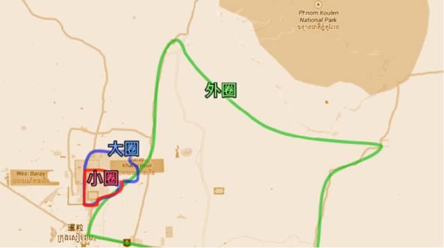 去吴哥游玩前,你一定要知道小圈、大圈与外圈黄金线路,在这里我们直接上图说明: