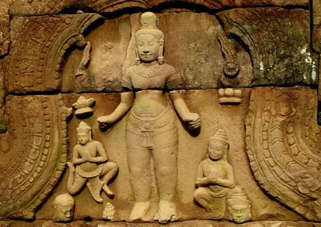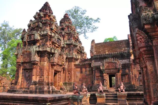 建于十世纪,公元967年时值加亚华罗曼五世王朝,此处为尊奉婆罗门教三大主神之一的湿婆神。由于建造此座古刹的石头为美丽的粉红色,此庙壁画的雕工是所有吴哥古迹中最精致细美的,是谓柬埔寨古代文明的一块宝。有吴哥艺术之钻的美誉。
