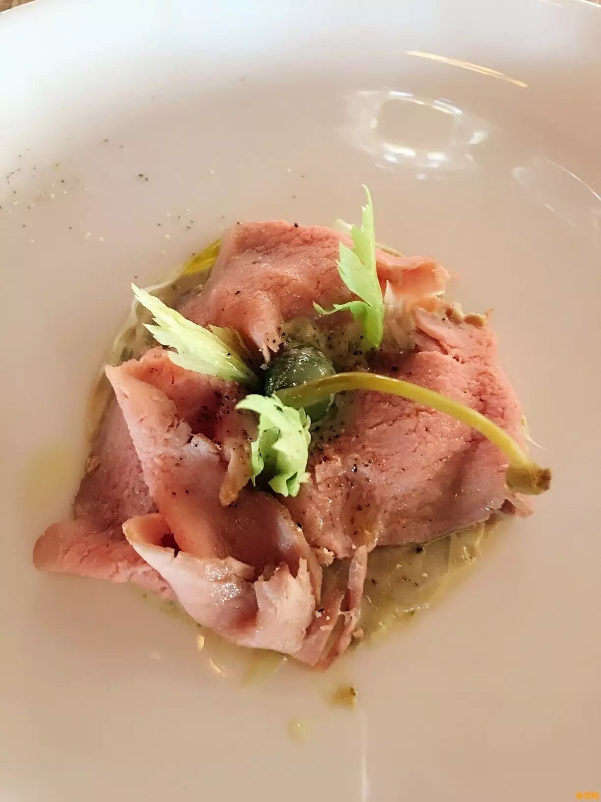 Do Forni 的意大利菜选用最新鲜的食材,由精良的烹饪团队制作而成。不管是色调的搭配还是口感上的独特都会给人带来惊喜,每一道菜都令美食爱好者痴迷。 (图)低温煮牛肉配金枪鱼酱和芹菜