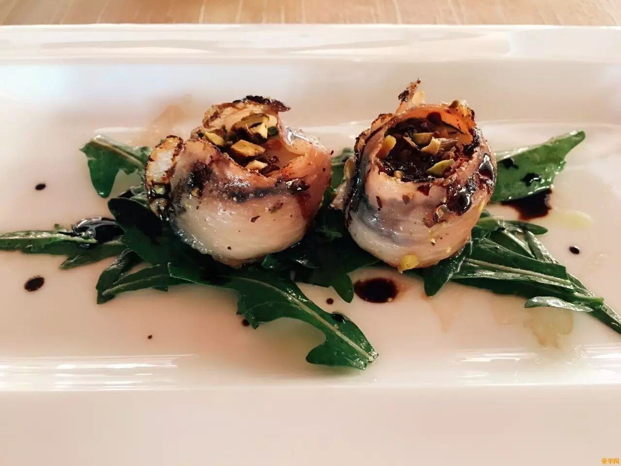 意大利菜源自古罗马帝国宫廷,有着浓郁的文艺复兴时代佛罗伦萨的膳食情韵,素称“欧洲大陆烹调之母”,在世界上享有很高的声誉。 (图)扇贝卷熏火腿和鼠尾草,配以芝麻菜沙拉和油醋汁