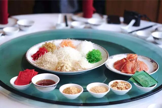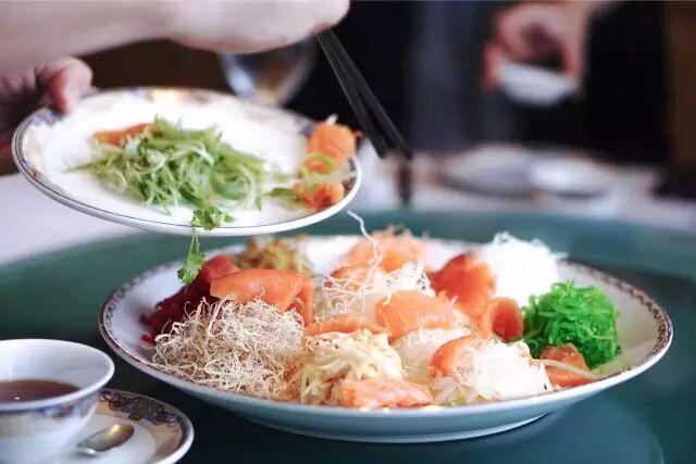 以三文鱼为主食材,搭配腌姜丝及各种有颜色的蔬菜丝及水果丝,如青红姜丝、红白萝卜丝及柚子肉等。“一堆堆”蔬菜丝,以达到七彩缤纷、色泽诱人为目的,预先排列在一个大圆盘上,然后洒上白芝麻、花生碎、五香粉及胡椒粉等,食材全部采用进口,质好味佳。