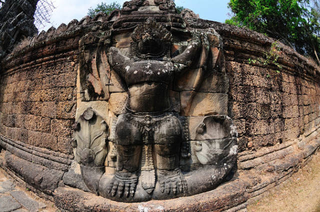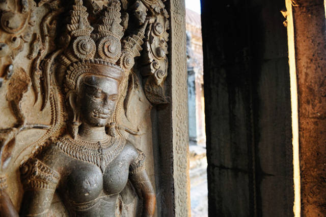 阿卜莎罗 Apsara 是天仙,“搅动乳海”中产生浪花的新生命就是Apsara,是众神的婢女,在吴哥各处寺庙的浮雕中都能见到她的身影。”阿卜莎罗也是柬埔寨民族传统舞蹈。 [巴扬寺引道的阿修罗]