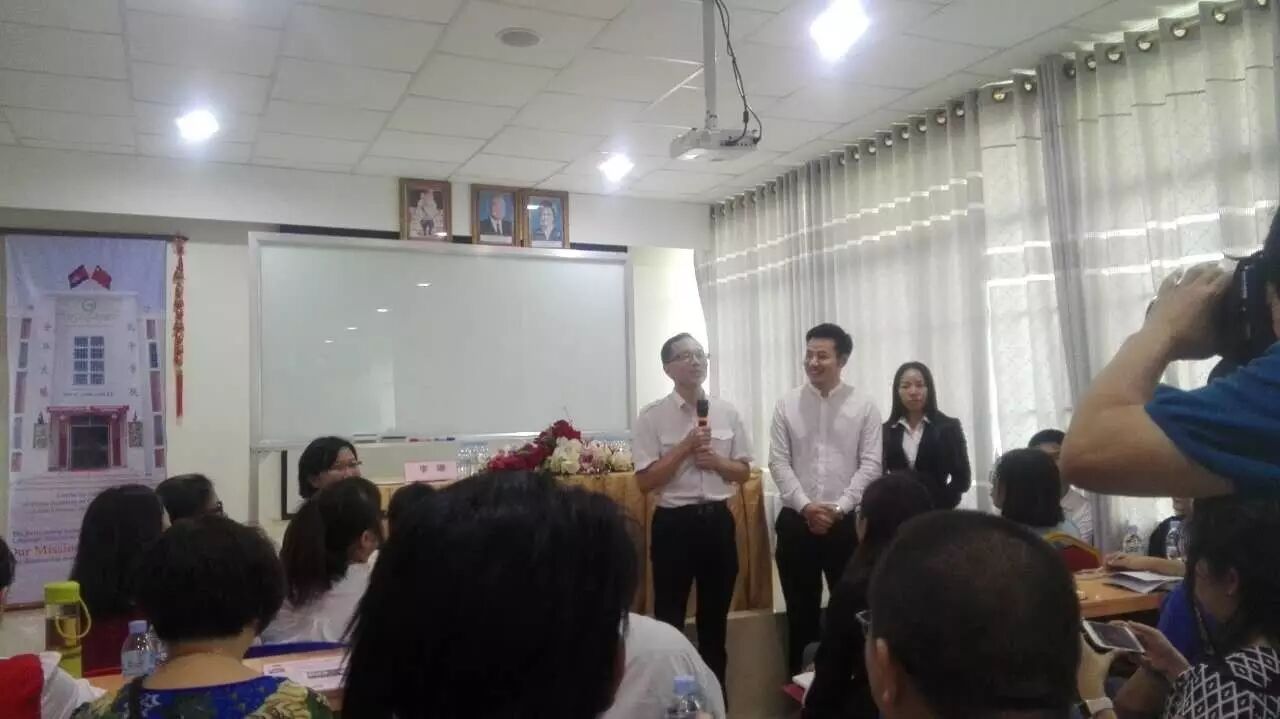 2点半讲座正式开始,活动组织方许女士、中国东盟法律合作柬埔寨中心负责人、场地提供方孔子学院夏院长等领导作了简短的发言。