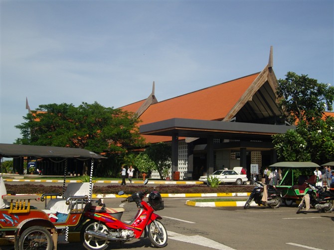 印象里柬埔寨是个贫穷的国家,实际上柬埔寨也的确是个贫穷的国家。我们做好了一切有着不详后果的心理准备,而一切担心在飞机落在暹粒机场的那一刻烟消云散……真是个艳阳天,暹粒机场不大但也颇有历史感,一些吴哥窟的佛像被放入了机场。而且入境手续也办理的很快,出了机场就看到GH派来接我们的司机举着一张粉红色的纸片写着我们的名字。一切都那么的顺利。