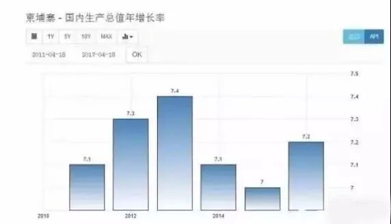 柬埔寨,一直以来给大家的印象都是比较落后的,就连百度百科上对它的描述也是不发达的国家之一。可是,这个所谓的不发达的国家,经济增长率却连续六年都保持在7%以上,排名世界前列。