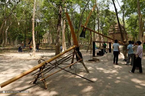 以“原住民密林开荒神器”的名义,磅通的2018新年限时限地点展品是——超级无敌大斧头/"ដឹងយក្ស" (把长8米) 以“祖先遗产瑰宝传承万代”/សាទរមរតកដូនតា的名义,暹粒的2018新年特制展品是——哈努曼超级巨型头罩/ខ្មុកហនុមានយក្ស